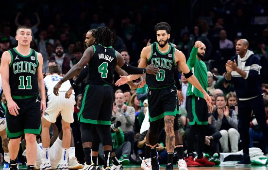 凯尔特人队首发:杰森-塔图姆、德里克-怀特、杰伦-布朗、拉马尔-史蒂文斯、朱-霍勒迪